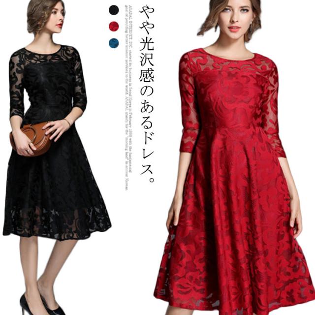 ロングワンピース 送料無料 レディース 7分袖 40代 50代 結婚式 スーツドレス パーティードレス 披露宴 ママドレス 30代 送料無料 スリム フレアワンピース 春 夏 ひざ丈