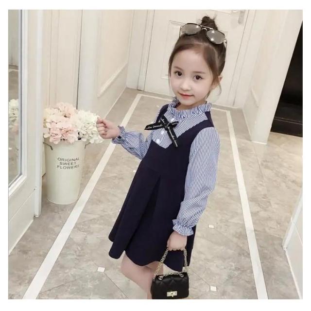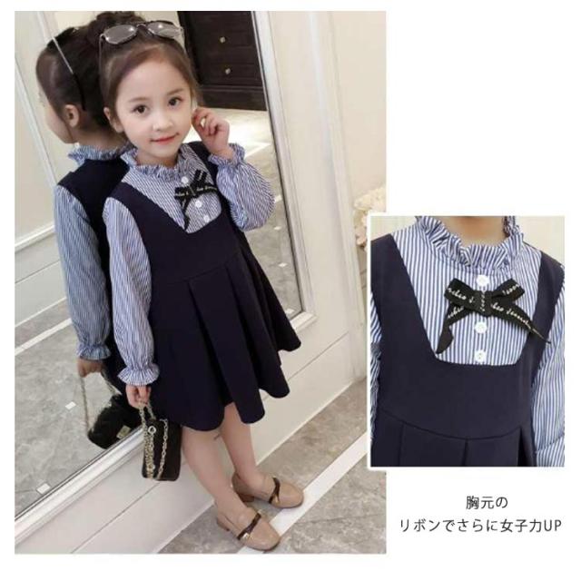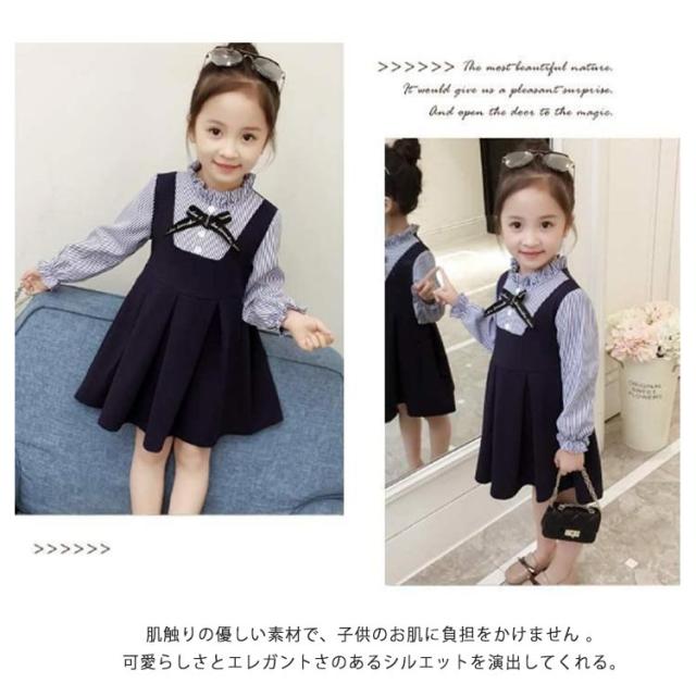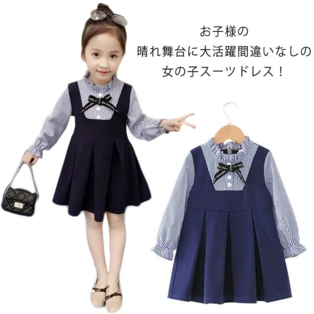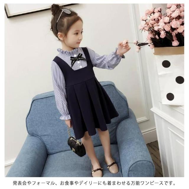 子供ドレス ジュニア 無地 長袖 発表会 キッズ 七五三 レイヤード風 女の子 リボン付き 重ね着風 お姫様 通園 通学 入園式 卒園式 ワンピース 結婚式 ス ピアノ 発表会 フォーマル