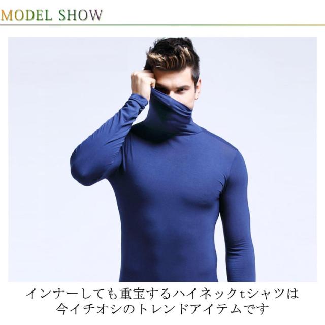 メンズ ハイネック ロンT タートルニット 防寒 無地 タイト 細身 プルオーバー Tシャツ カットソー 長袖 メンズ インナー カジュアル 秋 タートルネック