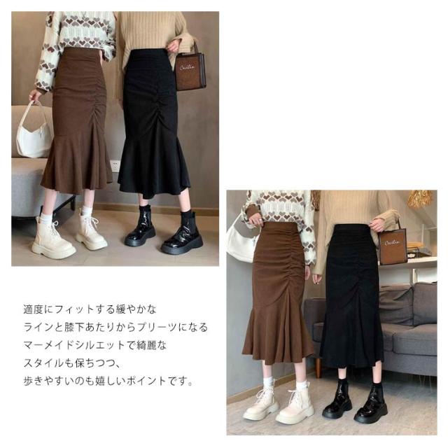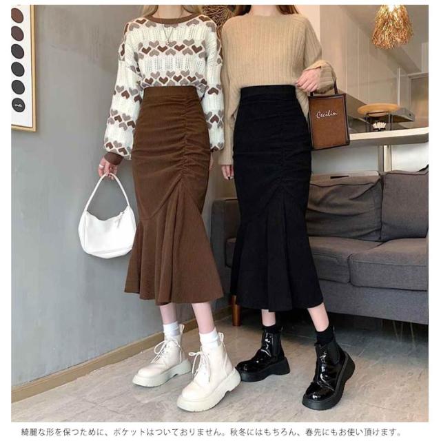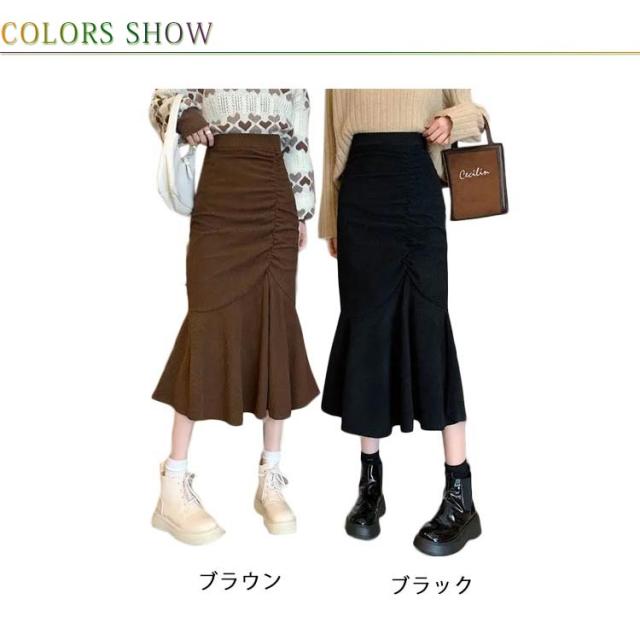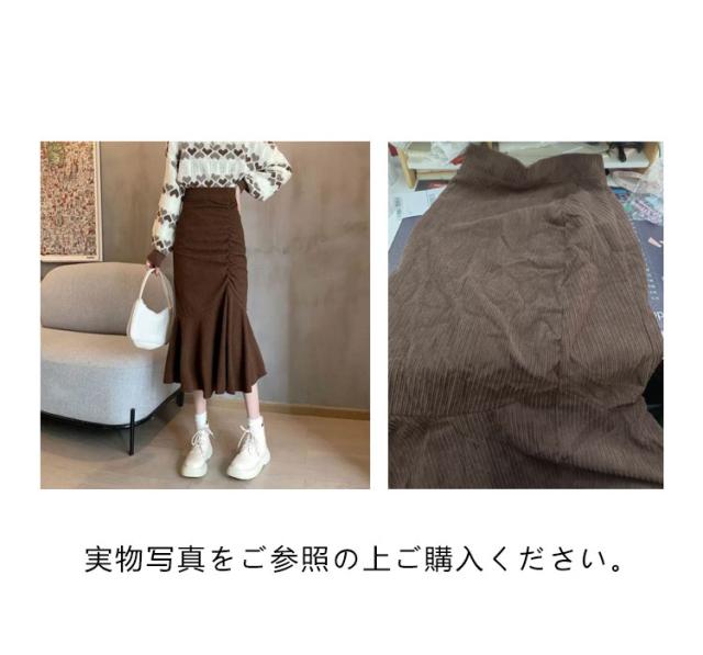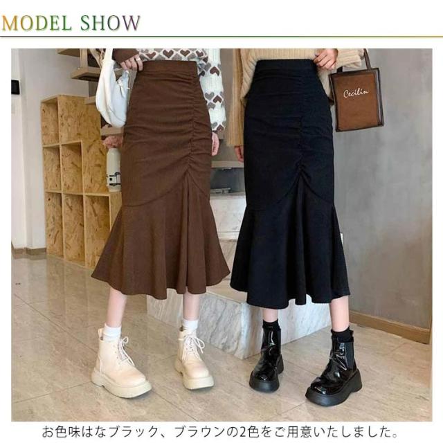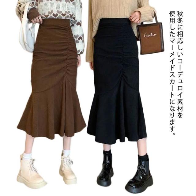 コーデュロイスカート 春 レディース マーメイドスカート フレアスカート Aライン ボトムス フリル付 ミモレ丈スカート 膝丈スカート スリット ウエストゴム 秋冬 春 送料無料