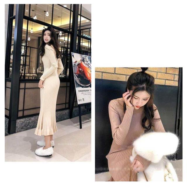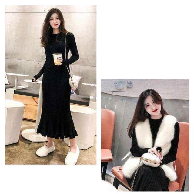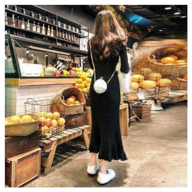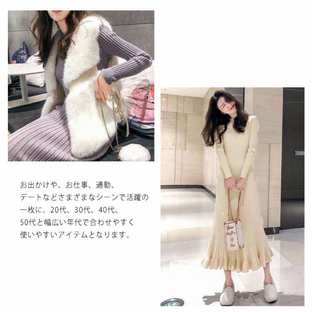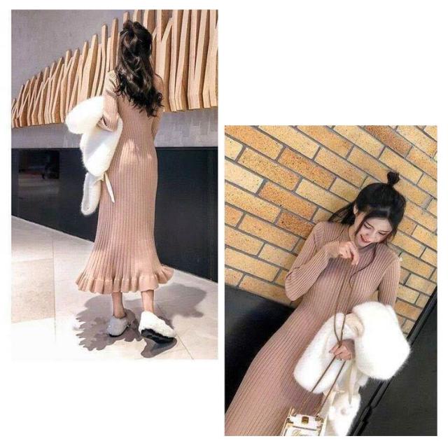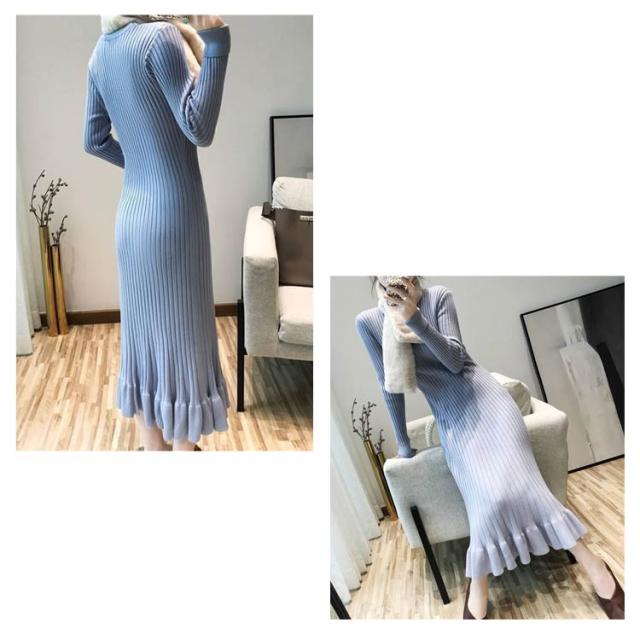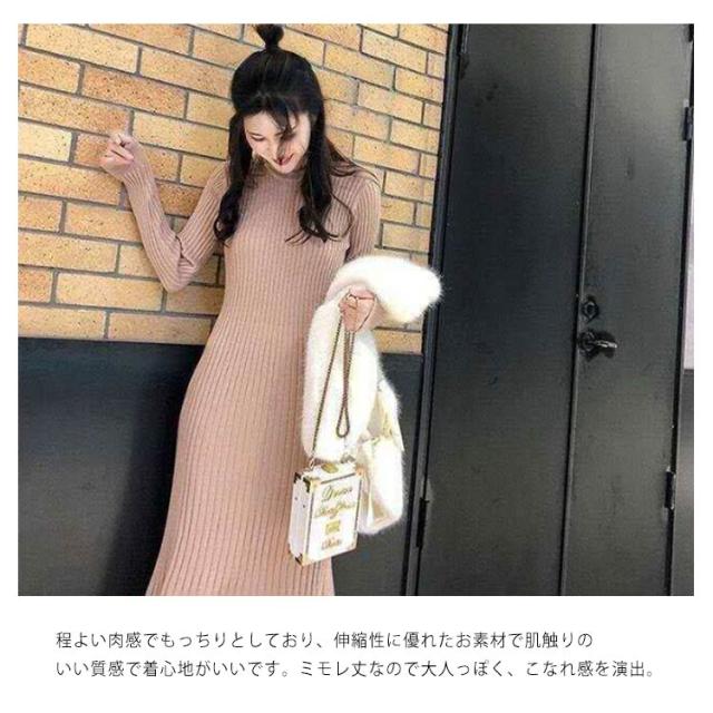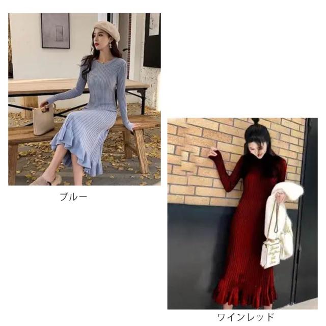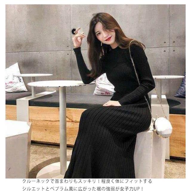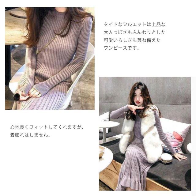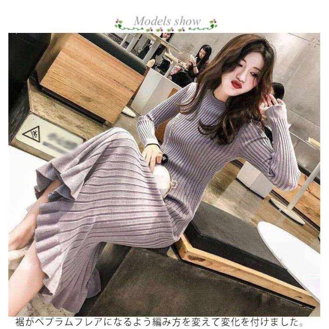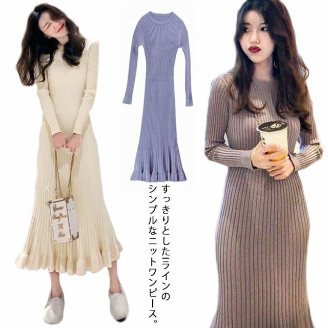 ロング丈 ロングニットワンピース フリル裾 ニットワンピース ニットワンピ マーメイド ミモレ丈 タイト 40代 aライン リブニット マーメイドスカート お洒落 20代 30代 秋冬