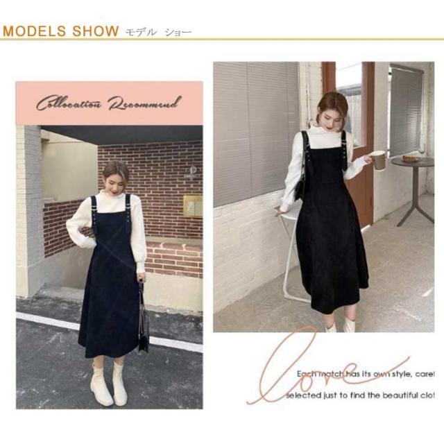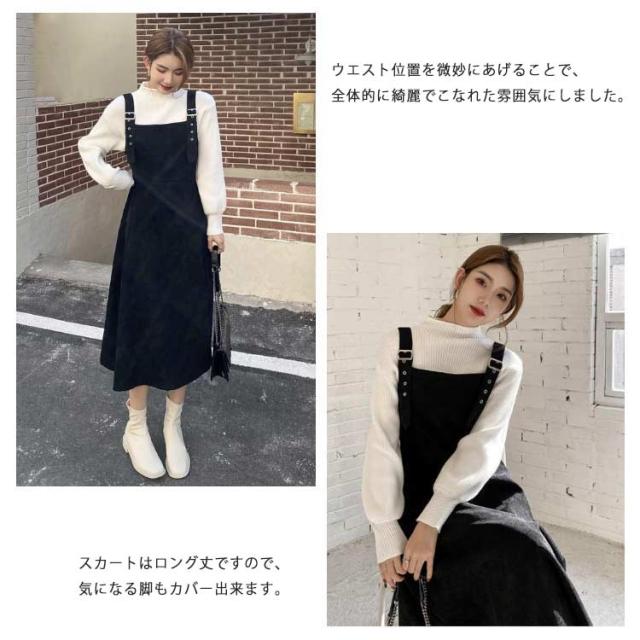 レディース サロペット ノースリーブ コーデュロイ ロングワンピース 【送料無料】オーバーオール 黒 レディース オールインワン ブラック ロング丈 スカート 膝下 大人 春 秋 ジャンパースカート