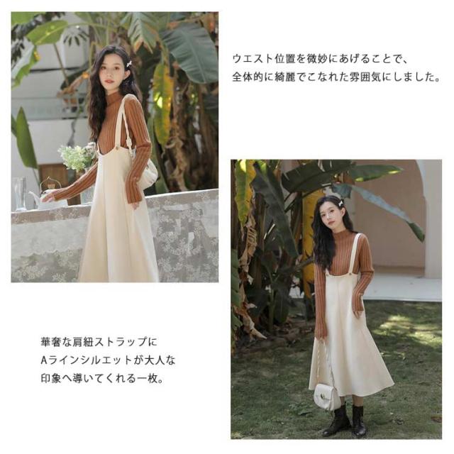 レディース オーバーオール ロングスカート ジャンパースカート フレア 30代 オールインワン 膝下 Aライン ベージュ ハイウエスト スカート 【送料無料】サロペット 大人 春 秋 冬 20代 ロング丈