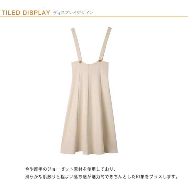 | 女性らしい印象に導く“ショルダーストラップサロペットスカート” やや厚手のジョーゼット素材を使用しており、滑らかな肌触りと程よい落ち感が魅力的できちんとした印象をプラスします。 ウエスト位置を微妙にあげることで、全体的に綺麗でこなれた雰囲気にしました。 華奢な肩紐ストラップにAラインシルエットが大人な印象へ導いてくれる一枚。 裾に向かって大きくフレアしたシルエットで女性らしさを演出 スカートはロング丈ですので、気になる脚もカバー出来ます。 | |