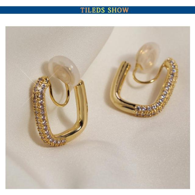 スクエア イヤリング ノンホール パーティー 痛くない ノンホール ビジュー ノンホール イヤリング 挟むだけ ピアス ピアス イヤリング イヤーカフ アクセサリー 結婚式 フェミニン ピアス