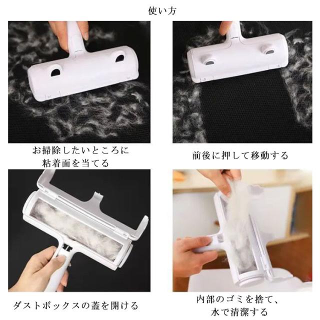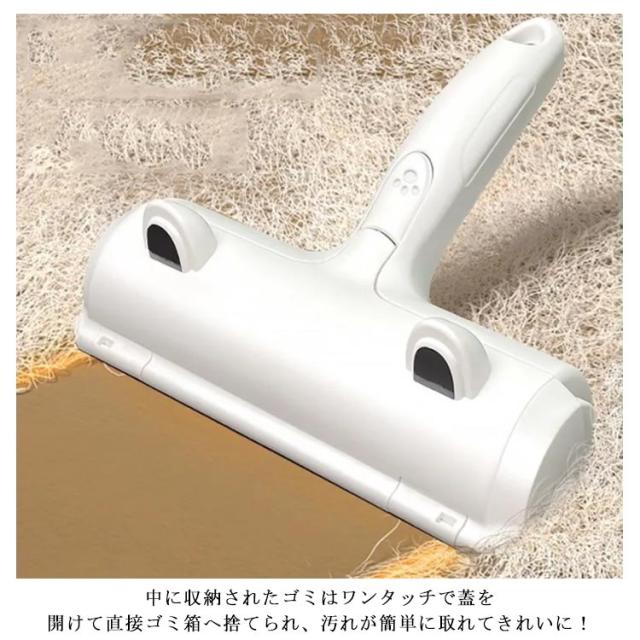 | 丸洗いOK! 水洗いで何度も使える抜け毛クリーナー。 前後に動かすだけで簡単に掃除できます。 音もしないから、早朝や深夜、周囲に迷惑掛けずいつでも掃除ができます! からめとった抜け毛は、自動的に内部のダストボックスに移動します。 中に収納されたゴミはワンタッチで蓋を開けて直接ゴミ箱へ捨てられ、汚れが簡単に取れてきれいに! カーペット、ペット用マット、ソファー、カーシート、布団や玄関マットなどにも使えます。 | |