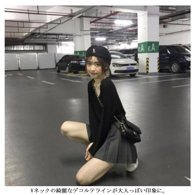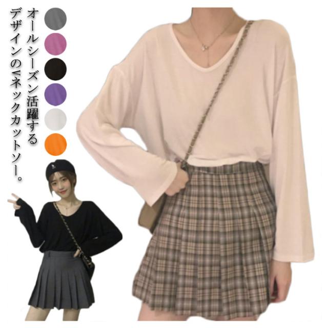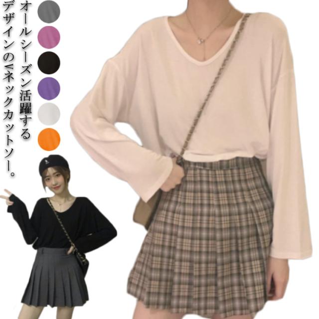 【送料無料】カットソー 安い ミドル丈 無地 長袖 Tシャツ ゆったり 薄手 韓国 Vネック シンプル レディース ロング丈 お尻が隠れる オーバーサイズ ビッグシルエット 大きいサイズ M L XL 2L 3L Tシャツ