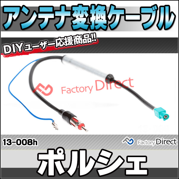 ca-13-008h アンテナ変換ハーネスケーブル ブースター付 Porsche ポルシェ FAKRA (Z) (オスx1) から JASO/DIN (オスx1) デッキ、ナビ交換時に最適 (パーツ ハーネス ナビ ケーブル 取り付け 変換 車 オーディオ)