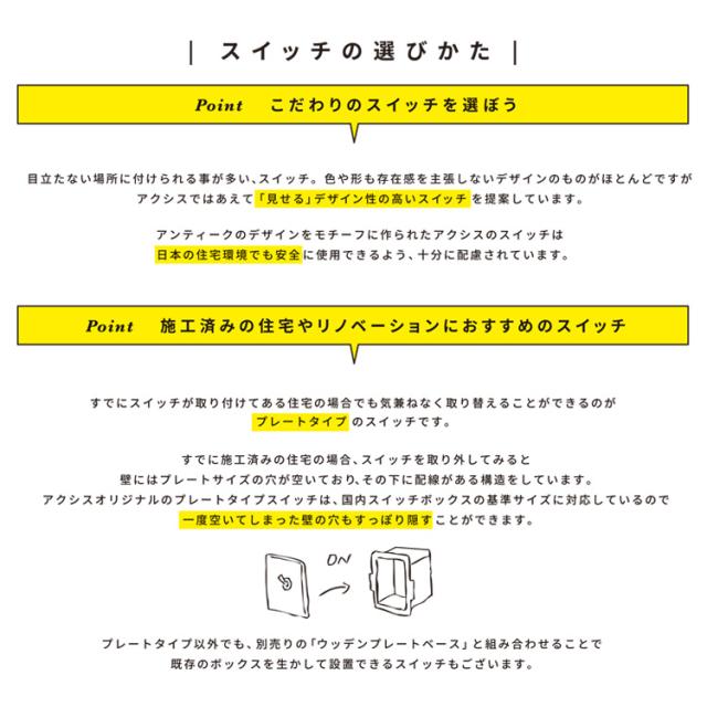 セラミックプレートと、真鍮のトグルがおしゃれなスイッチ
