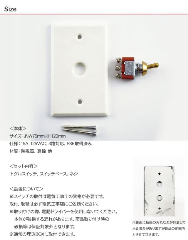 商品説明:すっきりとしたセラミック製のトグル式スイッチ。