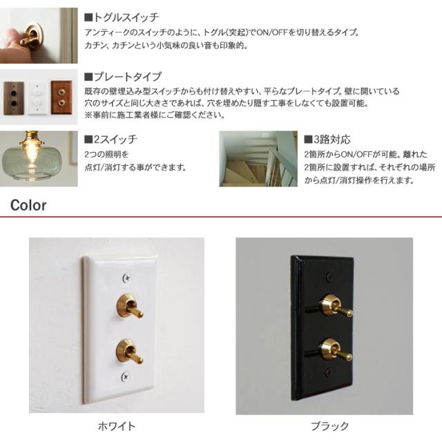 トグルスイッチ セラミックプレート (2スイッチ) HS2939 照明 スイッチ 照明器具 壁スイッチ 北欧 インテリア おしゃれ 韓国 インテリア ライト ダイニング リビング 寝室 玄関 ナチュラル 和モダン インダストリアル レトロ