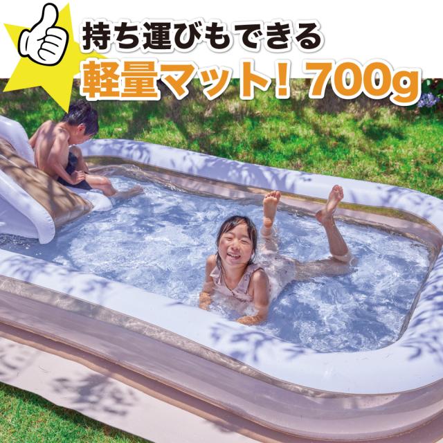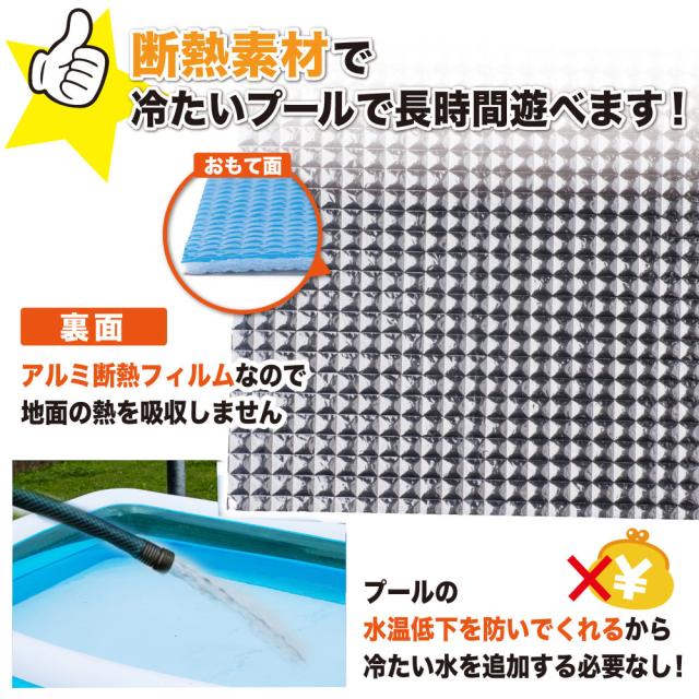 ビニールプールの下に敷くことで底が痛くなりません。プールの保護にもなるので、お子様も思い切り遊ぶことができます。