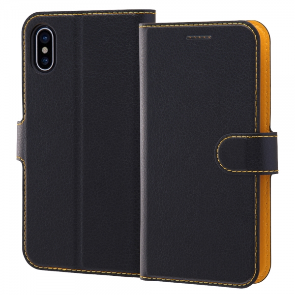 レイ・アウト iPhoneXS (5.8インチ) レイ・アウト iPhoneX 専用 手帳型ケース シンプル マグネット ブラック/オレンジ RT-P20ELC1/BOR