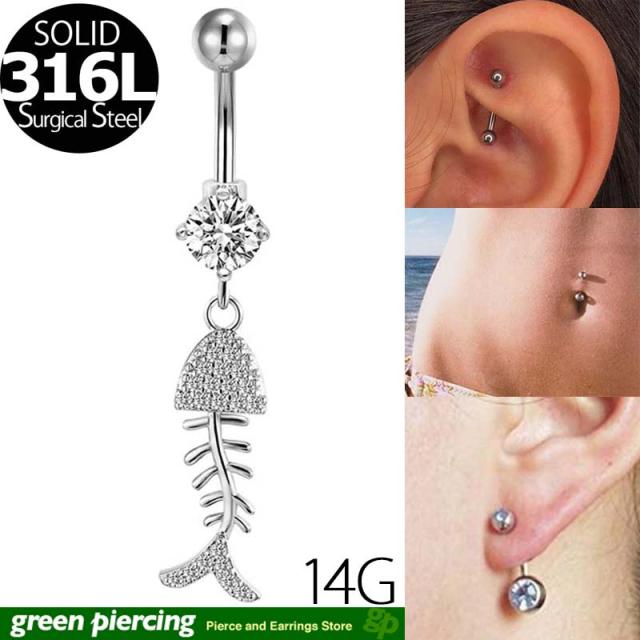 キラキラの大人かわいいサカナの骨のモチーフが存在感を発揮してくれるヘソピアス型ボディピアス。