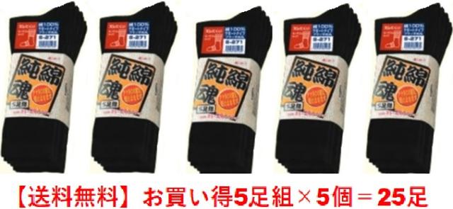 純綿魂メンズ メンズ靴下 綿100%シリーズ 5足組×5個=25足セット