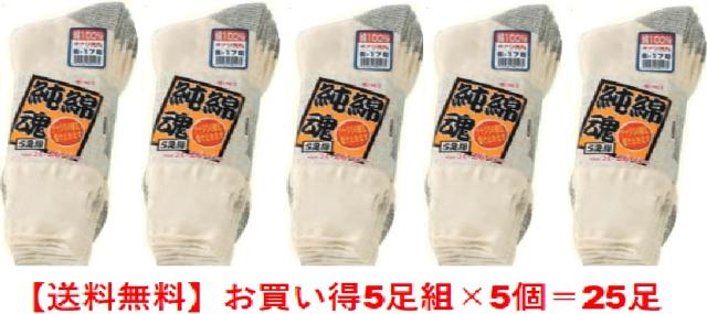 純綿魂メンズ メンズ靴下 綿100%シリーズ 5足組×5個=25足セット