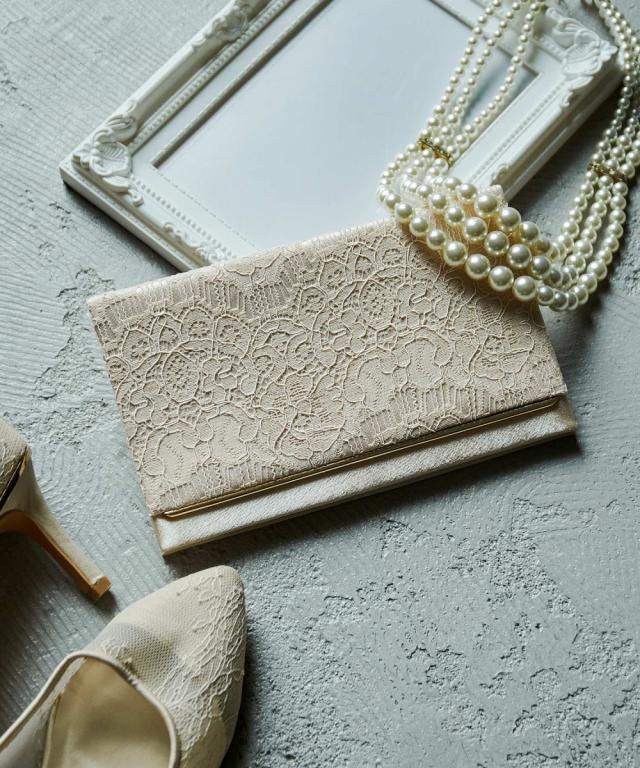 フェミニンなレース素材を使用したプレート金具付きの袱紗。