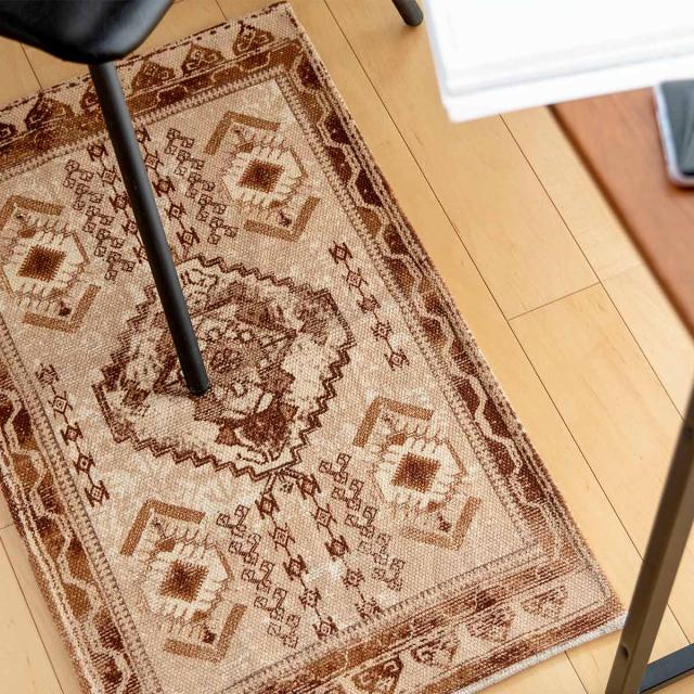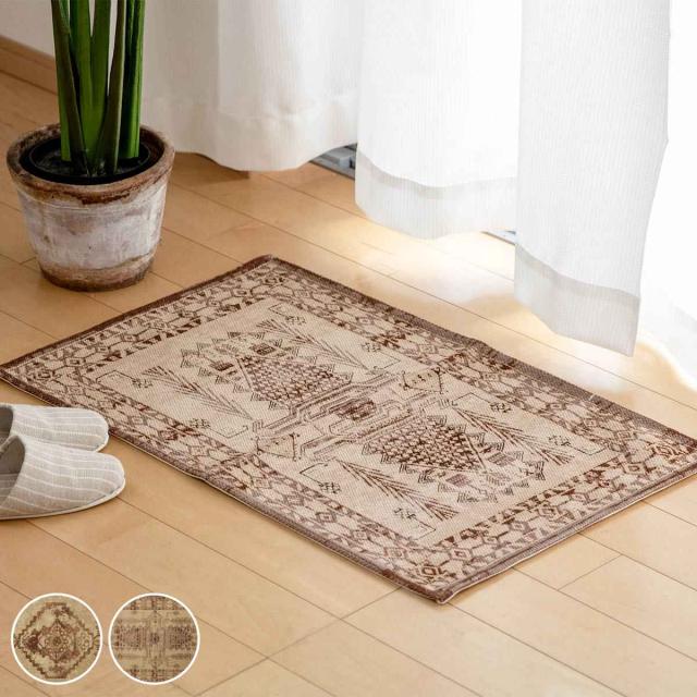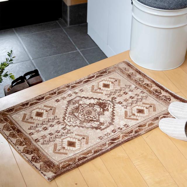 《 LH8984 45cm 75cm 床暖房 使える 可能 可 使用可能 使用可 リビング インテリアマット オールシーズン使える オールシーズン対応 1年中使える室内マット 屋内マット 多目的マット 長方形マット フローリング おすすめ オススメ ブラウン 茶 オリエンタル柄 》