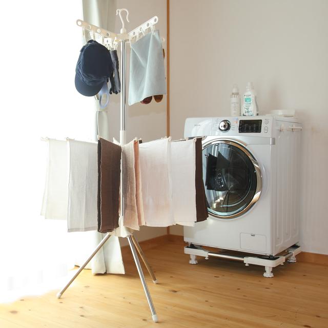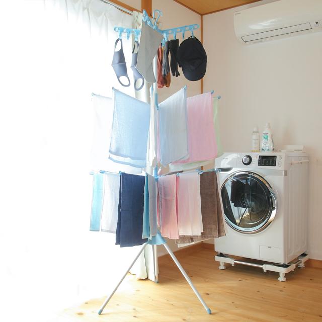 タオルや小物がたっぷり干せる3段タイプの物干しスタンドです。回転式の干し部で干したり取り入れたりがラクに行えます。組み立ては工具不要の差し込むだけなので簡単です。