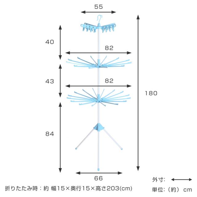| サイズ | 約 幅82×奥行82×高さ180(cm) 収納時:約 幅15×奥行15×高さ203(cm) パイプ直径:約2.5cm/約1.9cm |