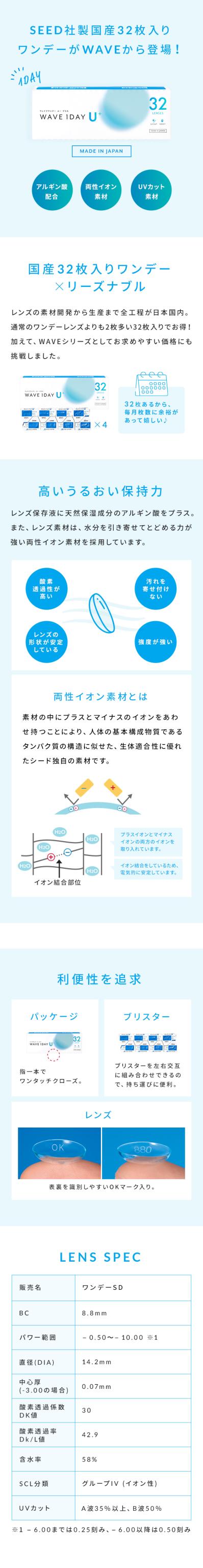 シード 社製 WAVEワンデー ユー プラス 32枚入り 2箱 1day コンタクトレンズ