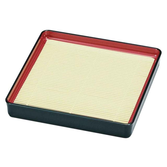 いつでも本格的な気分でお蕎麦を召し上がれるすだれ付きの蕎麦皿です。黒と朱のコントラストが美しく、高級感があります。素麺やうどん、天ぷらなどの盛り付けに最適です。すだれを外せば、ちらし寿司やサラダの盛り付けにもお使いいただけます。落としても割れにくく安心して使える樹脂製です。