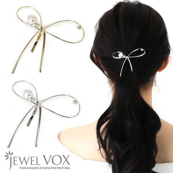 ポニーフック ヘアカフ ヘアアクセ レディース 立体 メタル パール リボン ストーン まとめ髪 ポニーテール ゴールド シルバー シンプル デイリー 結婚式 パーティー 二次会 大人 上品 30代 40代 50代 ブランド ジュエルボックス jewelvox