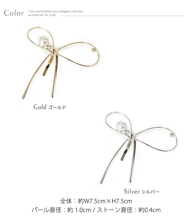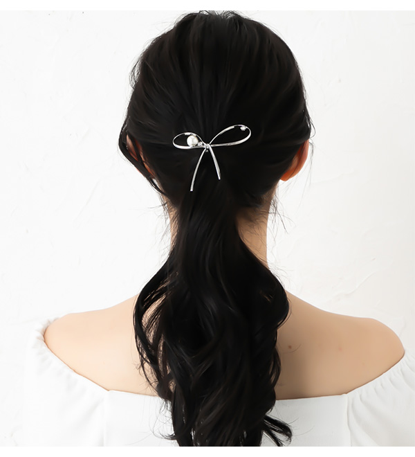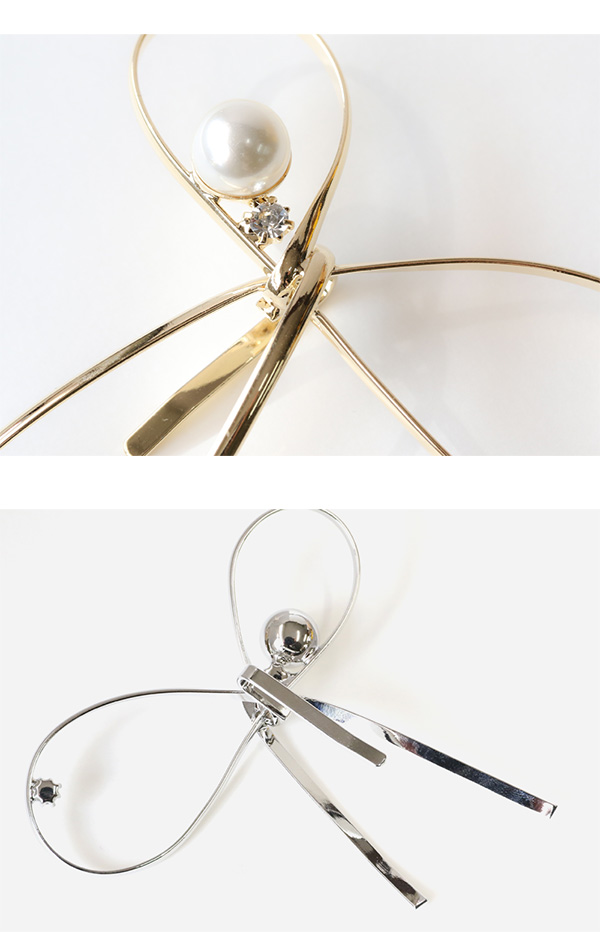 「ポニーフック」です。結んだような繊細なリボンモチーフにパールやストーンが華やかな