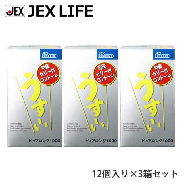 ジェクス コンドーム ゼリヤコート うす〜いピュアロング1000 コンドーム 12個入 3箱セット 送料無料 メーカー直営