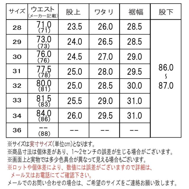 (ヌードサイズ表記とは数値が違いますので、お手持ちのパンツと測り比べてご注文ください。)