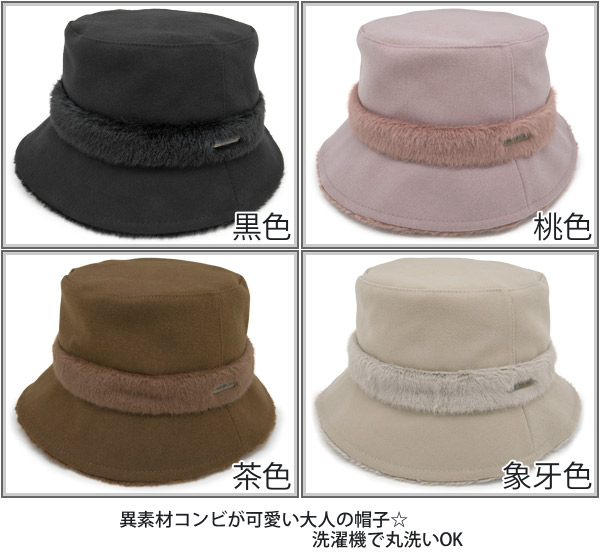 洗える ハット [メール便可] 帽子 レディース 秋冬 20代 30代 年配 中高年 UV 洗濯機OK / Classyエコファー バケットハット