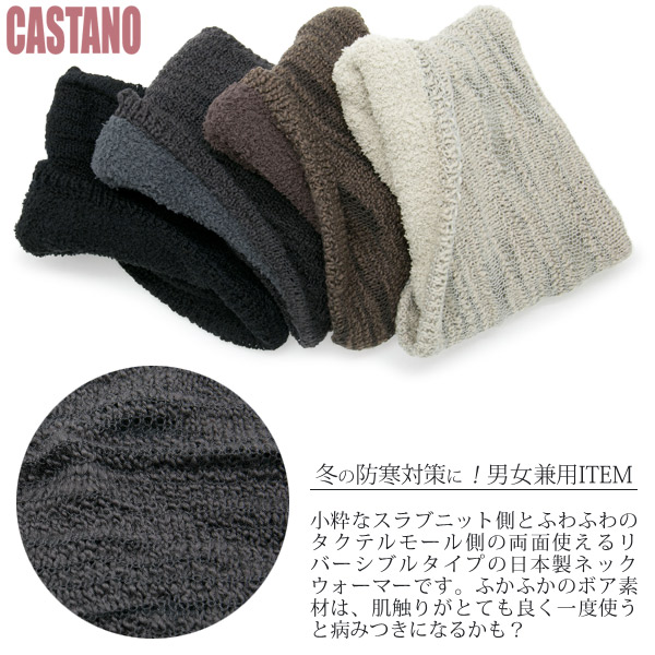 小粋なスラブニット側とふわふわのタクテルモール側の両面使えるリバーシブルタイプの日本製ネックウォーマーです。ふかふかのボア素材は、肌触りがとても良く一度使うと病みつきになるかも?また、ネックウォーマーだけでなく、ターバンとしても利用可能な2WAYタイプのため、おしゃれの幅が広がるのではないでしょうか。メンズでもレディースでも性別に関係なくご利用していただけるユニセックスのアイテムです。冬の防寒対策にリバーシブルタイプなので、その日のコーデに合わせて表裏2パターンを楽しむことができます。手洗いが可能な商品のため汚れたら洗えて、いつも清潔にお使いいただけます。