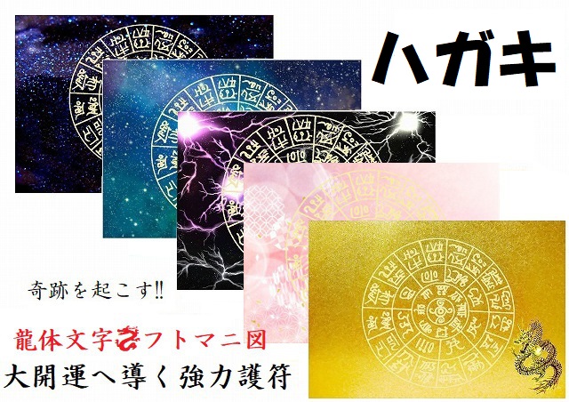 【奇跡を引き寄せる】金運・開運・仕事・恋愛・家庭・夢・人間関係・不運・魔除・邪気邪念・生き霊・悪霊・雑霊★ハガキ★【龍神・フトマニ図・龍体文字】パワーストーン★護符(霊符)