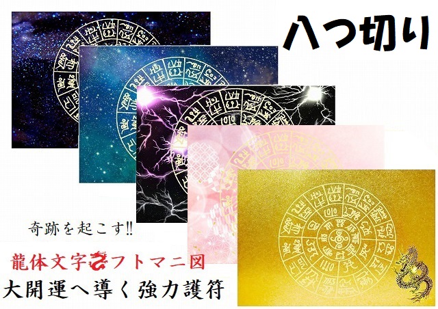 【奇跡を引き寄せる】金運・開運・仕事・恋愛・家庭・夢・人間関係・不運・魔除・邪気邪念・生き霊・悪霊・雑霊★八つ切り★【龍神・フトマニ図・龍体文字】パワーストーン★護符(霊符)