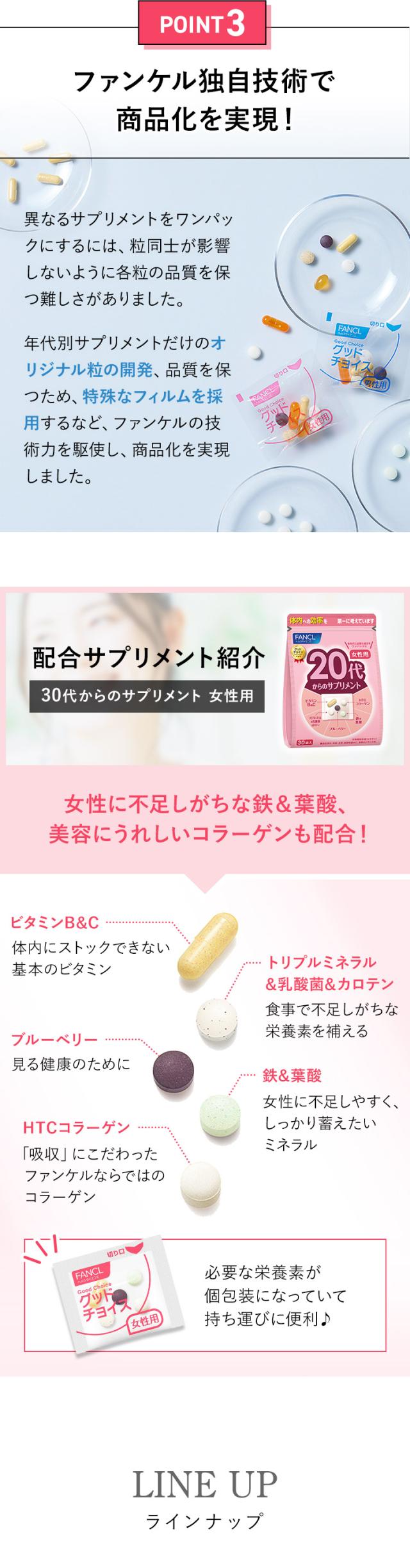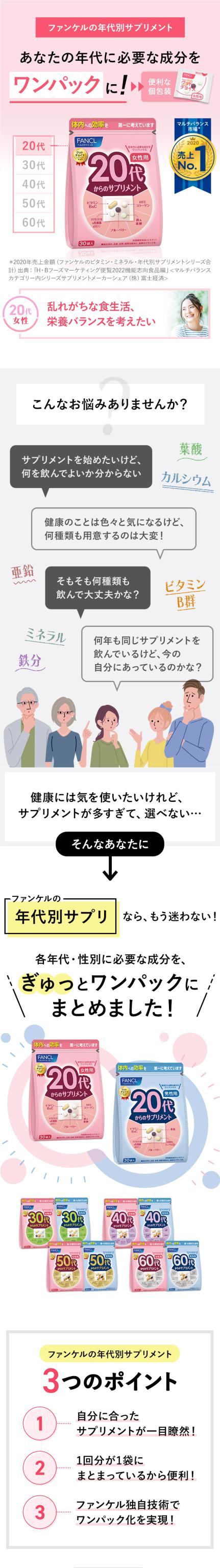 20代からのサプリメント 女性用<栄養機能食品> 45〜90日分 【ファンケル 公式】[FANCL サプリ サプリメント ビタミンc ビタミンb ビタミン ミネラル 乳酸菌 鉄 女性 葉酸 ブルーベリー 鉄分 栄養 食事で不足 コラーゲン 亜鉛 カルシウム 美容サプリ 栄養補給 20代 ]