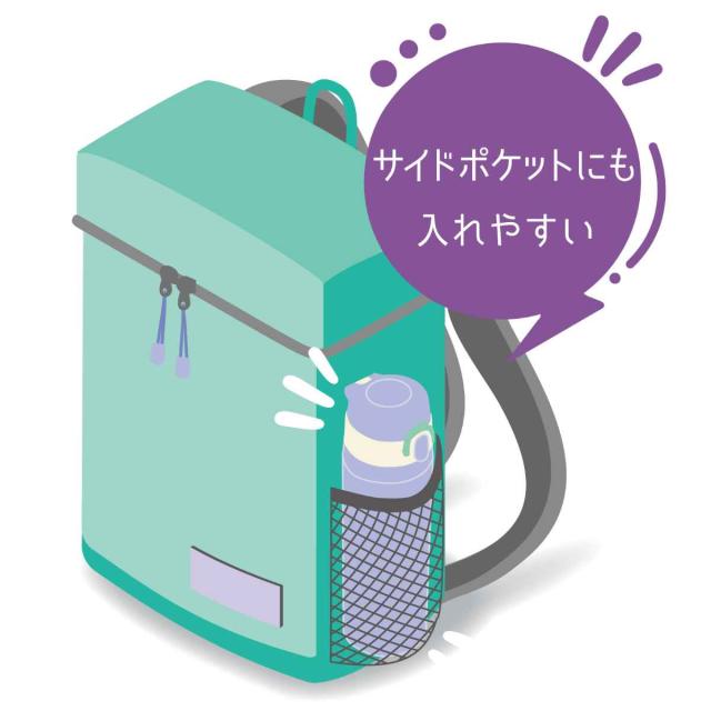 幅7.5cmとスリムな形状なので、リュックのサイドポケットや鞄の中に入れてもかさばりにくく、持ち運びに便利です。また、重さは約200gと軽量で、通学・通園・スポーツなど様々なシーンに対応できます。
