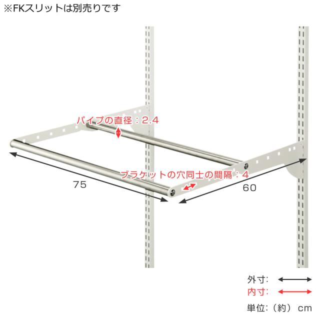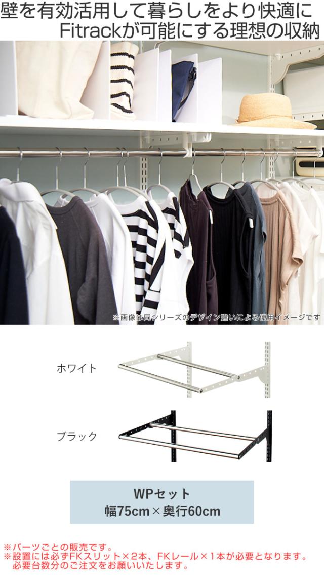 DIY パイプ 2本 WPセット 幅75cm 奥行60cm ( ハンガーラック フィットラック パイプハンガー 壁付け 収納 壁面収納 衣類収納 大容量 吊り下げ収納 収納スペース 有効活用 壁掛け ラック 引っ掛け 玄関収納 )