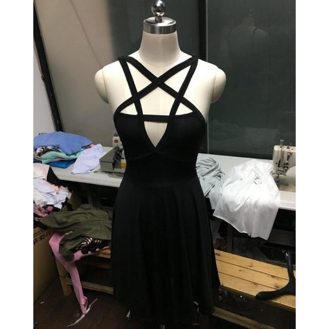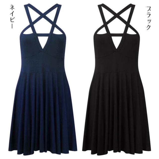 ワンピース ノースリーブ ミニ丈 ショート丈 フレアスカート 星 スターモチーフ レディース ミニワンピース ゴスロリ ゴシックロリータ ロリータファ