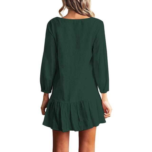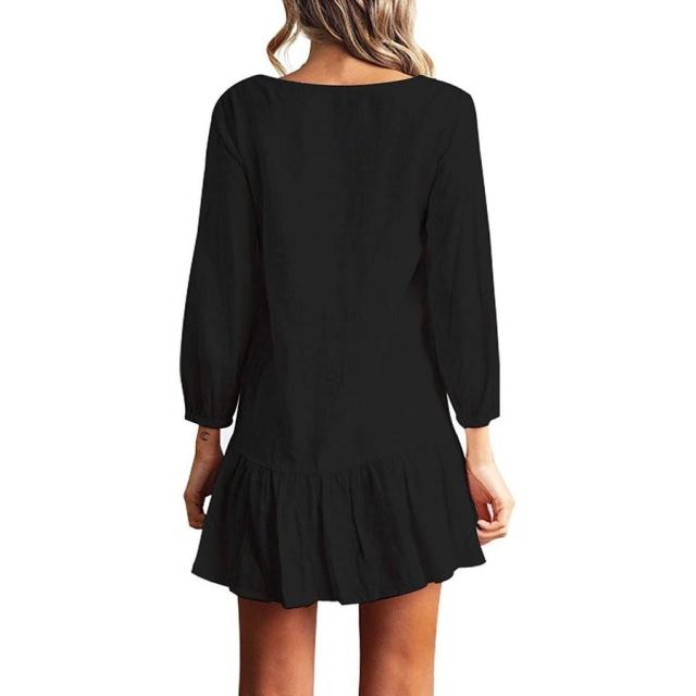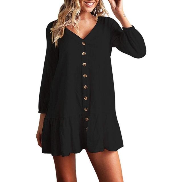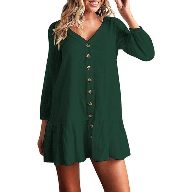 シャツワンピース 長袖 Vネック ミニ丈 ショート丈 レディース ミニワンピース フレアスカート トランペットスカート ボタン おしゃれ カジュアル