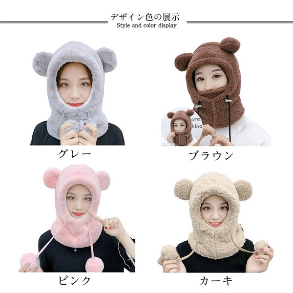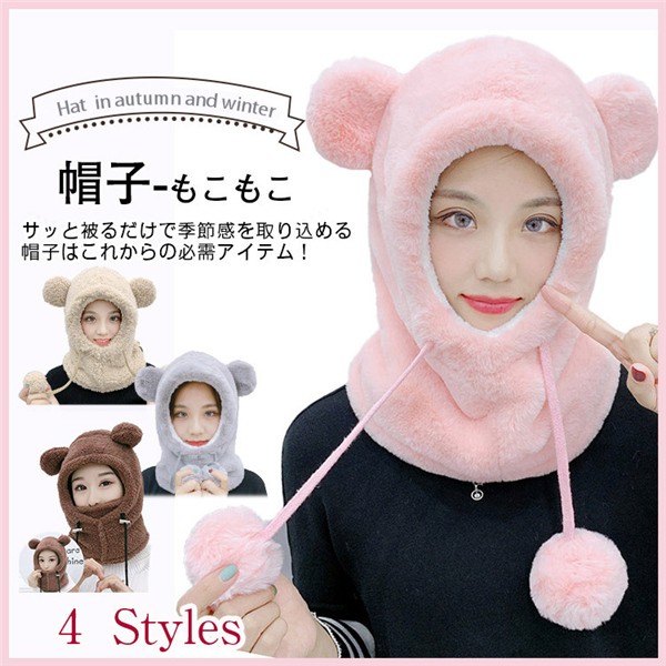人気帽子 レディース ハット 防風 暖かい 防寒 冬 厚手 可愛い クマの耳 暖かい もこもこ サイクリング 大人 ファション 韓国風 冬新作