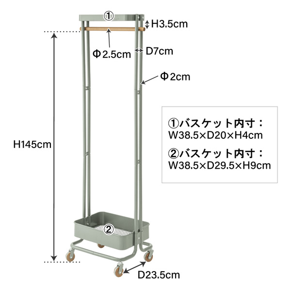 ハンガーワゴン キャスター付 棚付 衣類収納 北欧風 おしゃれ グリーン 東谷