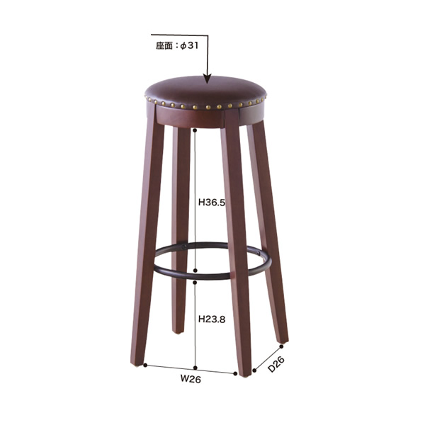 カウンタースツール スツール ハイスツール おしゃれ 椅子 イス いす ラウンド 丸型 ブラウン 高さ70cm 東谷【メーカー直送】