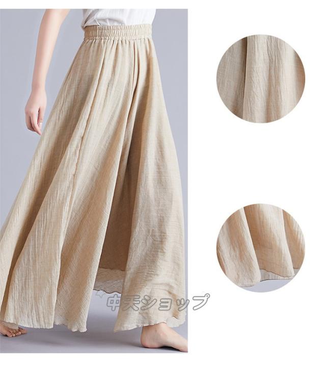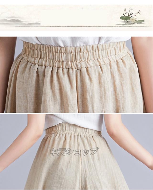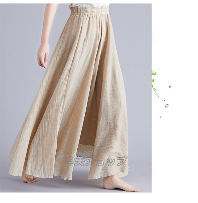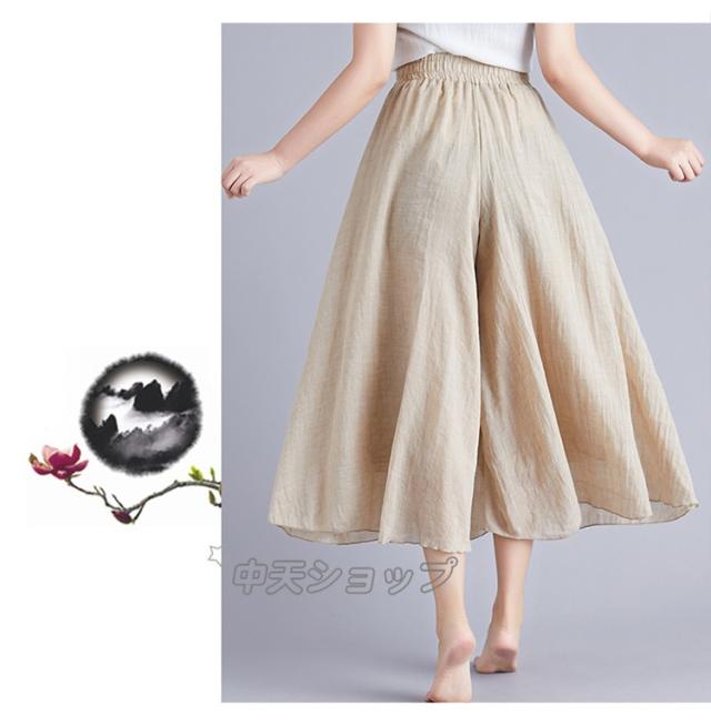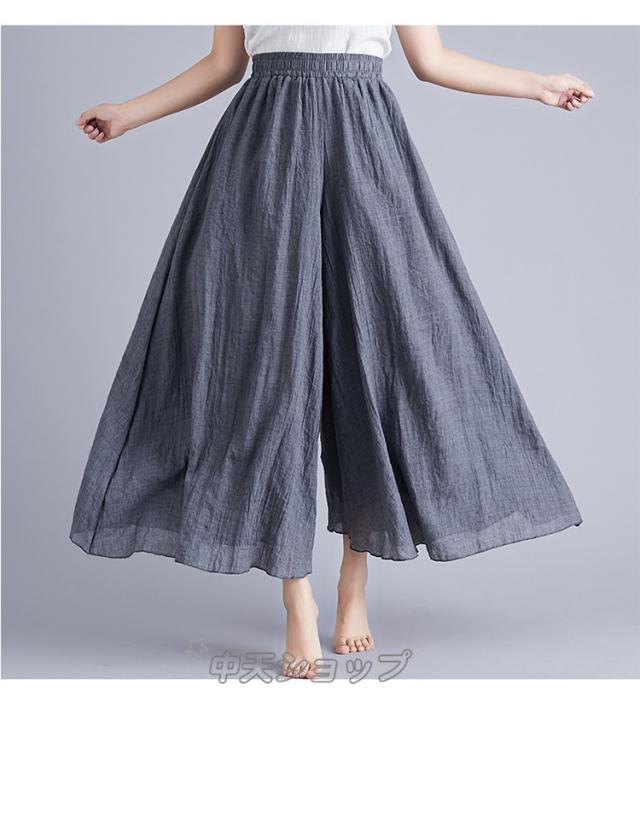 ガウチョパンツワイドパンツ レディース 綿麻ガウチョパンツ リネン 無地 ロング丈 ウエストゴム ゆったり シンプル おしゃれ ボトムス 春 夏 秋パンツ 全5色