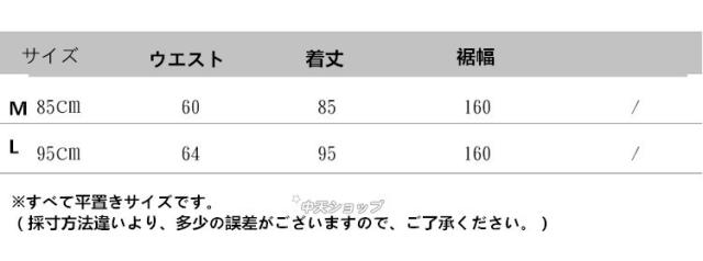 | サイズについての説明 | 85cm:着丈約85cm ウエスト60cm モモ幅160cm 95cm 着丈約95cm ウエスト64cm モモ幅160cm |