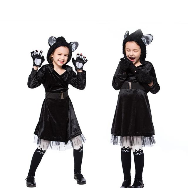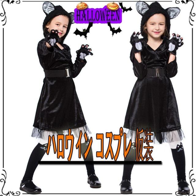 クリスマスハロウィン コスプレ 黒猫 キッズ 子供用 女の子 仮装 可愛い ハロウィン仮装 アニマル 衣装 コスチューム イベント パーティー