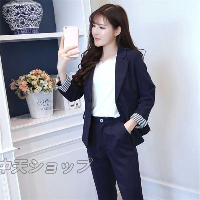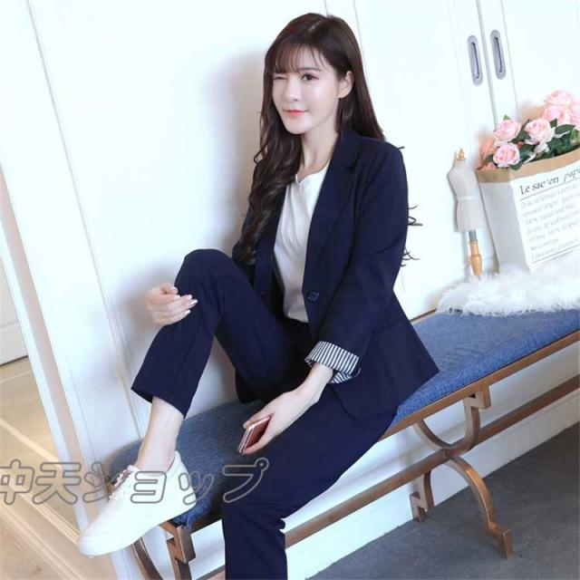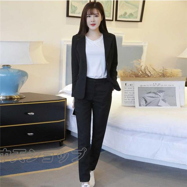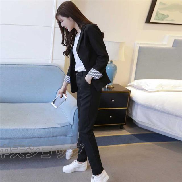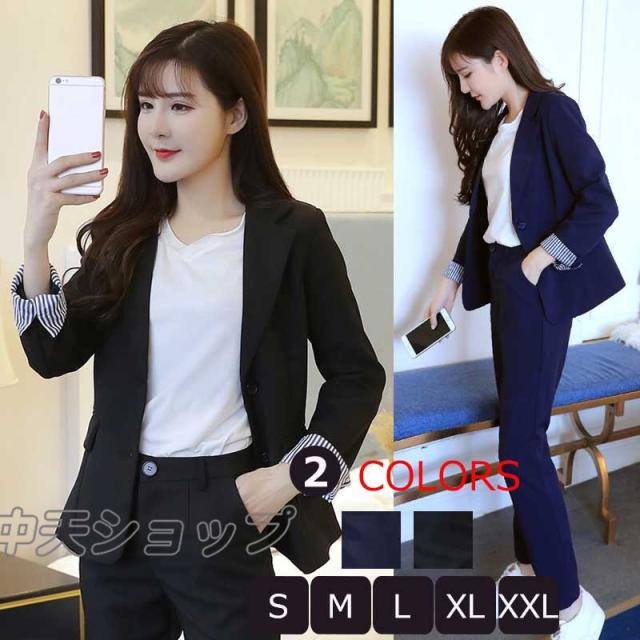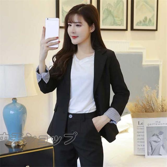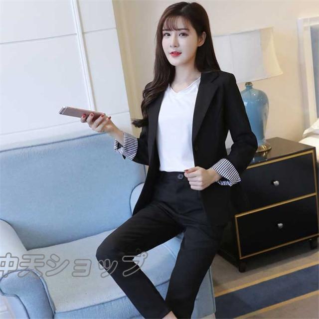 パンツスーツレディースおしゃれパンツスーツ卒業式長袖テーラードジャケット+パンツセレモニースーツ フォーマル パンツスーツブラック入学式 面接 〜XL