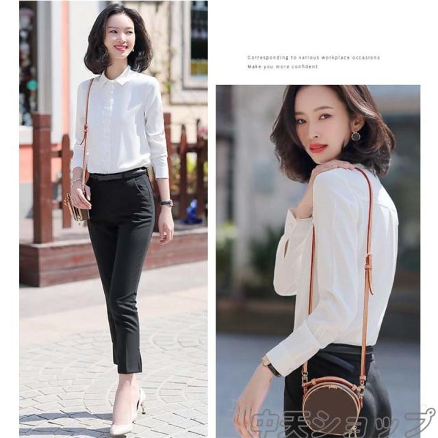 パンツスーツ スカートスーツ レディース おしゃれ シフォンシャツ 長袖 無地 韓国風スーツ ハイウエスト オフィス 通勤 入社式 おしゃれ 大きいサイズ 新品