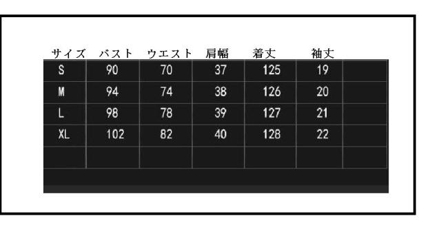 | サイズについての説明 | |