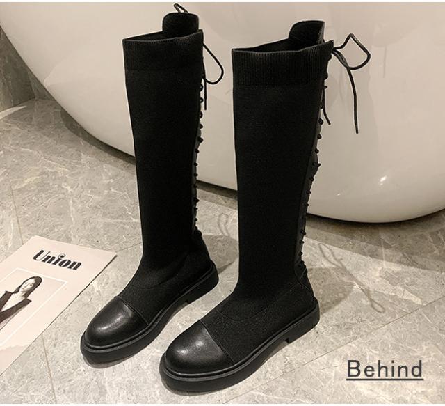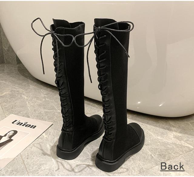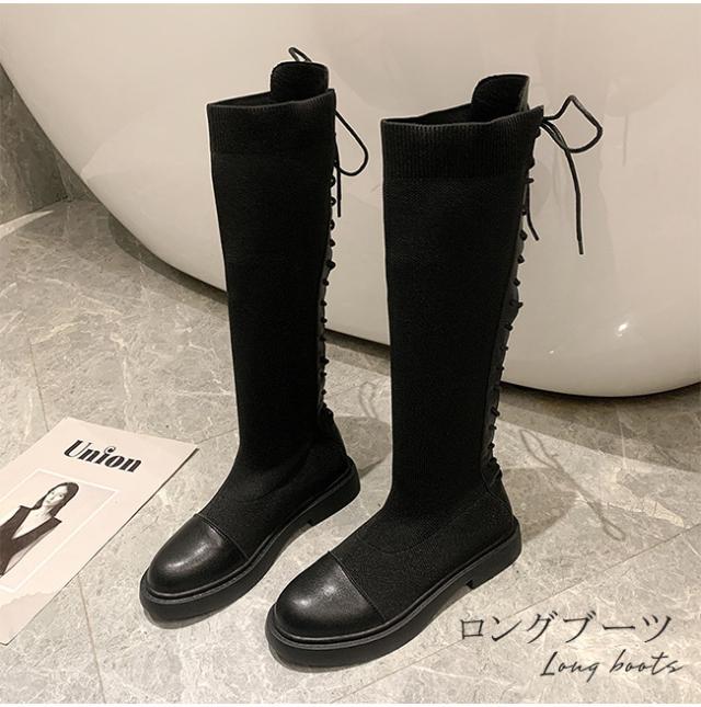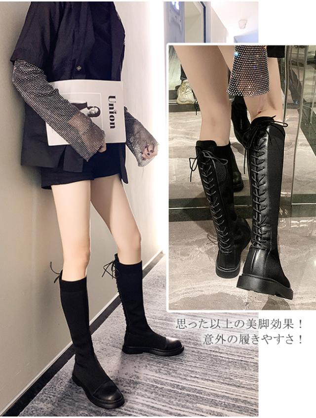 ロングブーツ レディース ブーツ レースアップ 靴 秋冬新作 美脚ブーツ ローヒール 厚底 カジュアル 新作 疲れにくい 歩きやすい