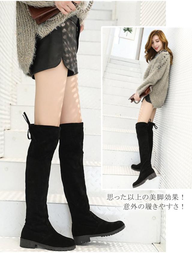 ロングブーツ レディース ブーツ 靴 秋冬新作 美脚ブーツ ローヒール ニーハイブーツ 厚底 暖かい 大きいサイズ